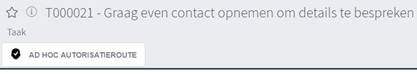Wanneer een nieuwe taak is aangemaakt en de gebruiker heeft geen beoordelaar of autorisatieroute ingevuld, dan verschijnt de knop “ad hoc autorisatieroute”.