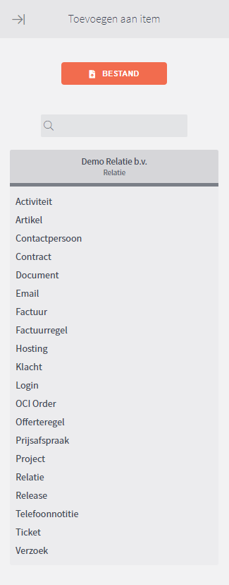 Klik op een categorie om een item aan te maken, als de categorie in meerdere views zit dient u een keuze te maken in welke view u het item aan wilt maken.