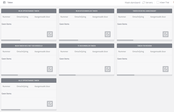 · Mijn openstaande taken: In deze lijst staan alle taken die de ingelogde gebruiker op een bewust moment nog moet verrichten.